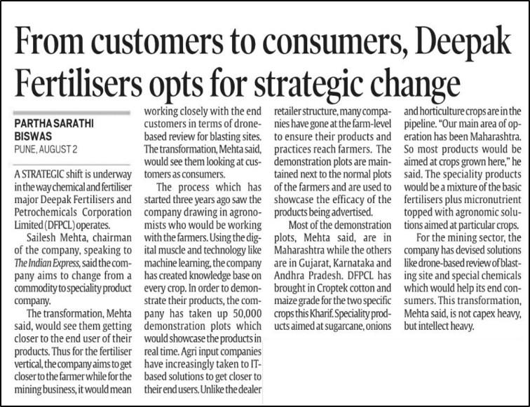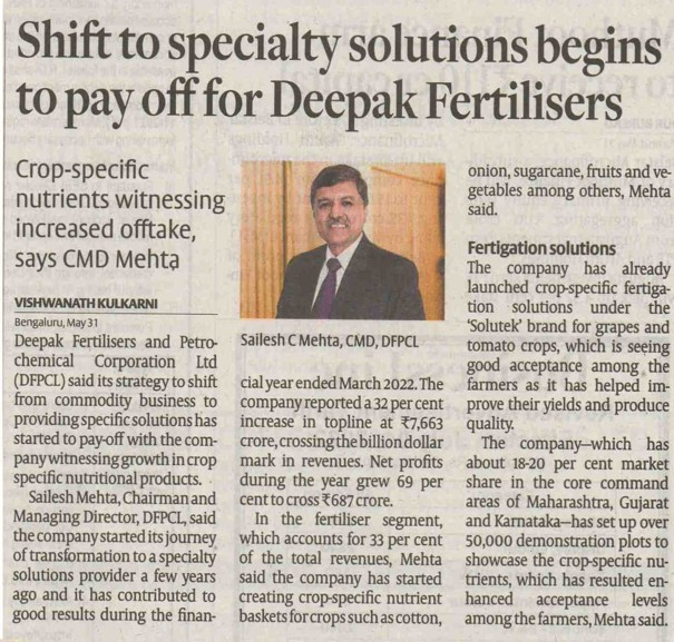 - DFPCL Accelerates Strategic Shift from Commodity to Specialty Crop Solutions, Indian Express, August 2, 2022
