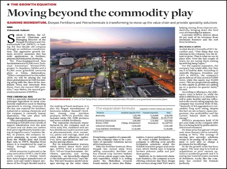 - New Indian Express - Deepak Fertiliser Profit Soars 3-fold on Robust Sales, November 03, 2024